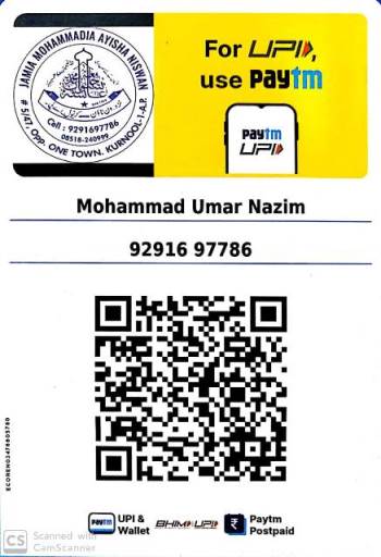 In case of amount transfer, please send your name and address along with phone number to determine Zakat, Sadaqat, Donations and Sponsorship on WhatsApp number 9291697786. Or notify the above mentioned phone number.